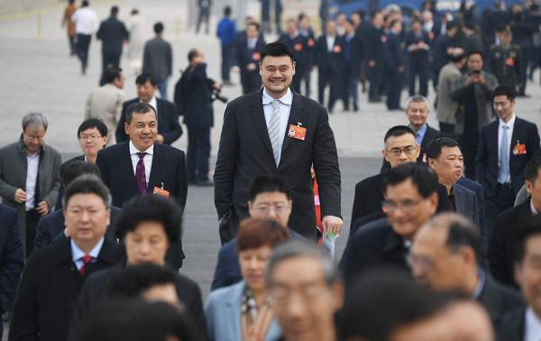 时间:2019-03-11 17:27:27阅读:590次来源:赞片网 2019年3月10日,姚明在北京人民大会堂参加全国政协十三届二次会议第三次全体大会。 本文图片 视觉中国姚明和其他委员抵达会场。 参加两会的全国政协委员、中国篮协主席姚明在接受采访时,围绕男篮国家队